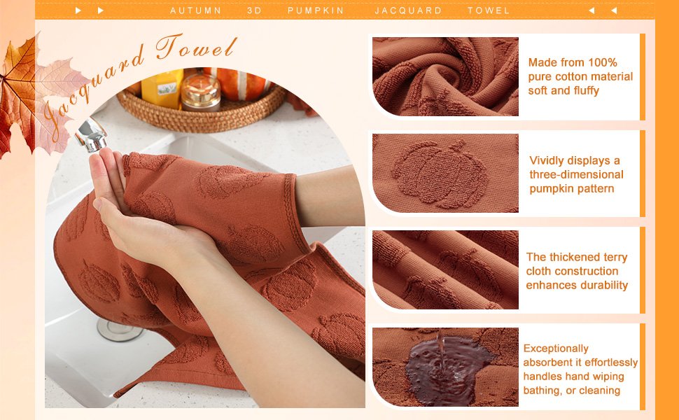 In essence, the 2 Pcs Fall 3D Beige Pumpkin Jacquard Hand Towels combine softness, excellent absorbency, and robust durability, making them an exemplary choice for anyone seeking comfort and quality in their home textiles.