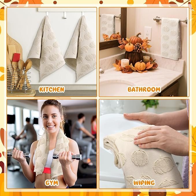 In the bathroom, these hand towels can be gracefully draped over a towel rack, providing a soft, absorbent surface for hand drying or face washing. Their elegant pumpkin design adds a seasonal flair that can elevate the overall bathroom decor. In communal areas, they may be utilized during family gatherings or holiday parties, effortlessly blending functionality with festive decor.
