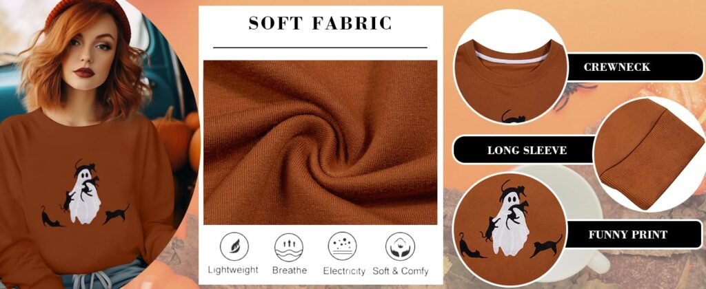 Overall, the combination of high-quality material and thoughtful design features make this Halloween sweatshirt a must-have for women looking to express their seasonal spirit in comfort and style. It’s not just a piece of clothing; it’s an invitation to celebrate the festivities in a stylish yet casual manner.